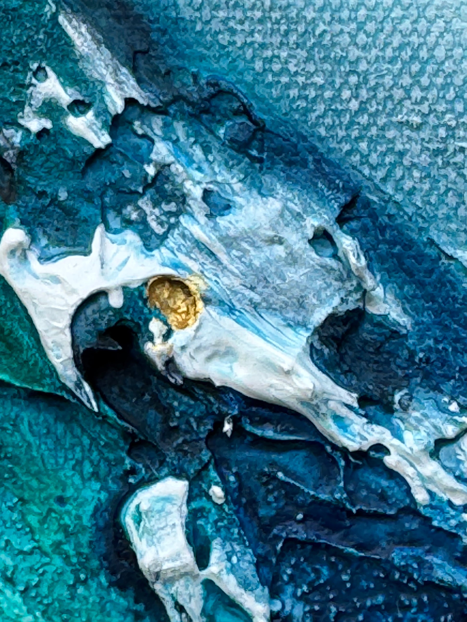 I sculpted the flow with thick texture and rich, layered blues, allowing the gold accents to glint like energy moving through water.